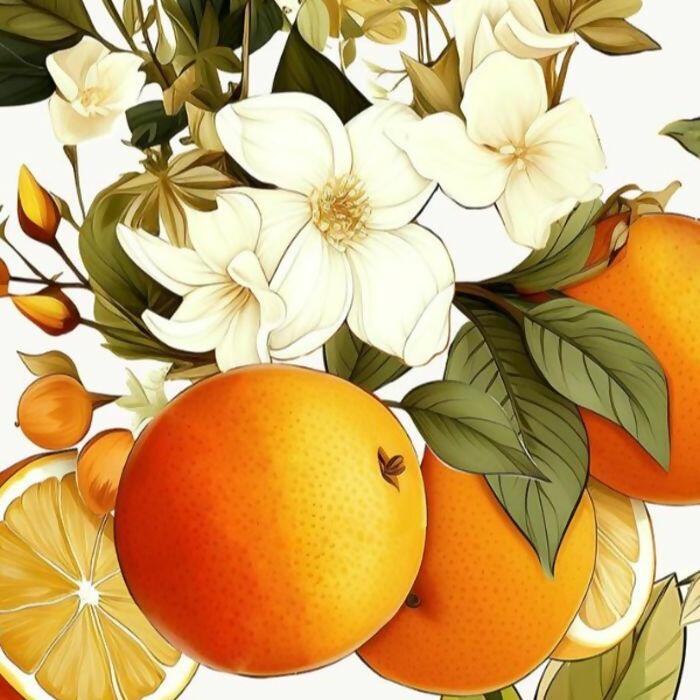 Descrição Tecido Tricoline Digital Laranja Flores