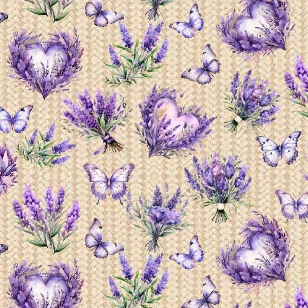 Descrição Tecido Tricoline Digital Lavanda Corações