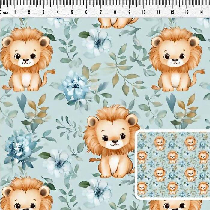 Descrição Tecido Tricoline Digital Leão Fundo Azul