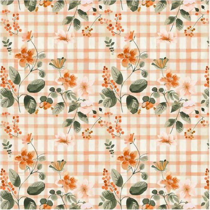 Descrição Tecido Tricoline Digital Lemonade Floral Xadrez Laranja