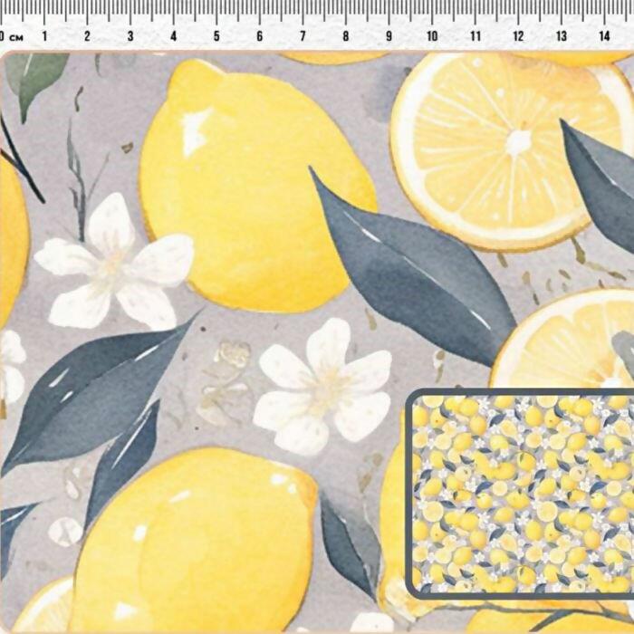 Descrição Tecido Tricoline Digital Limão Fundo Cinza