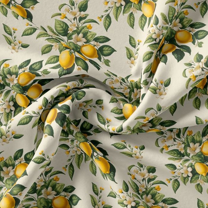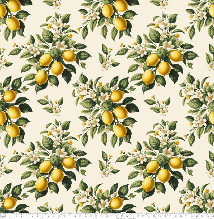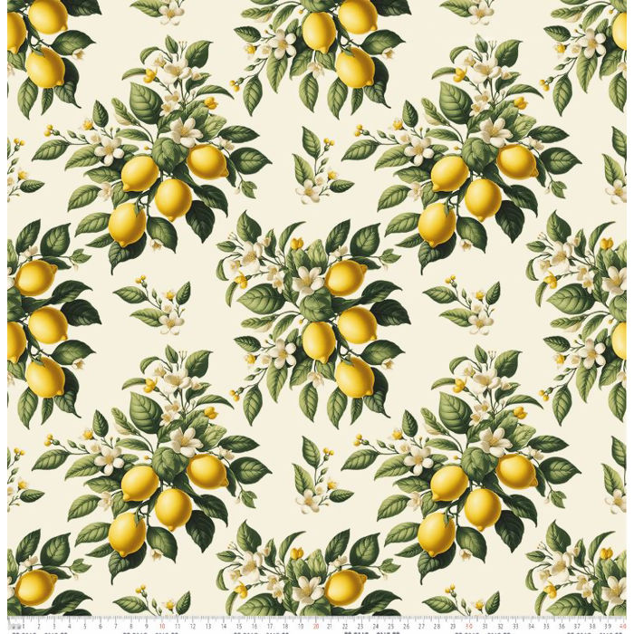 Tecido Tricoline Digital Limão Siciliano Fundo Bege