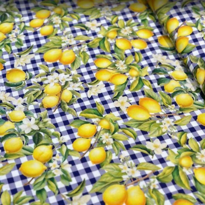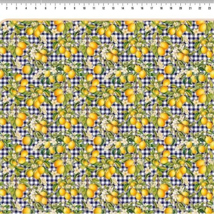 Tecido Tricoline Digital Limão Xadrez Azul Escuro