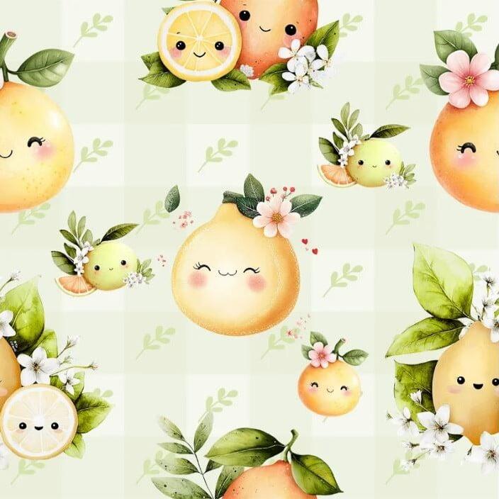 Tecido Tricoline Digital Limões Fundo Xadrez