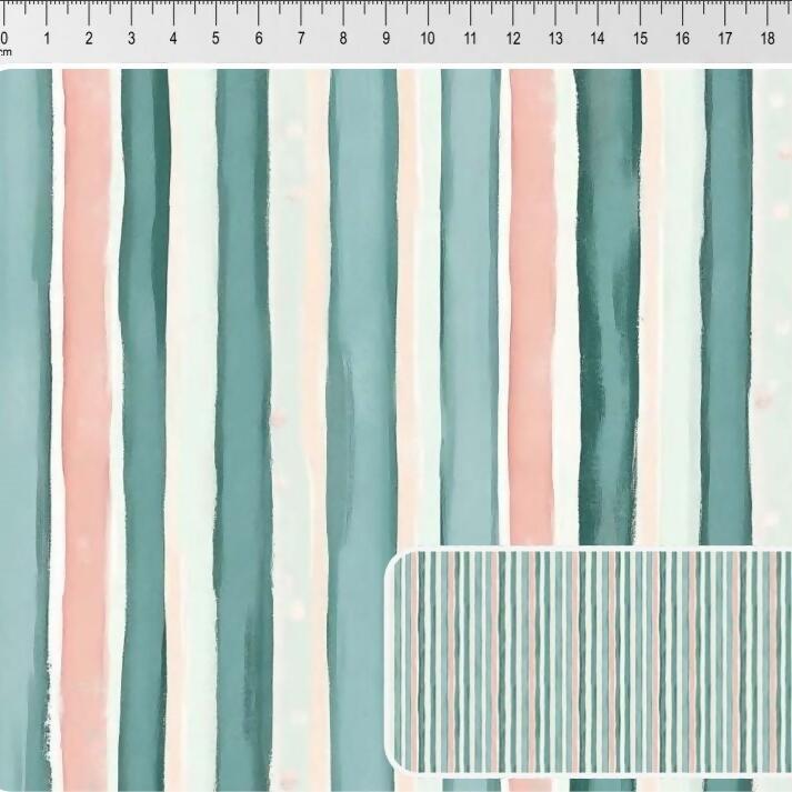 Tecido Tricoline Digital Listrado Verde Branco e Rose