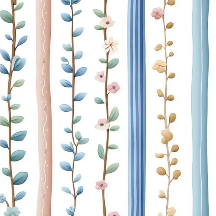 Descrição Tecido Tricoline Digital Listras e Ramos