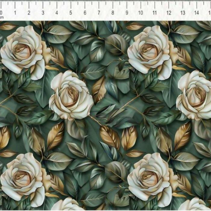 Descrição Tecido Tricoline Digital Lush Rosas Brancas