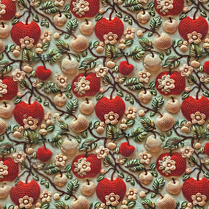 Descrição Tecido Tricoline Digital Maçã Crochê