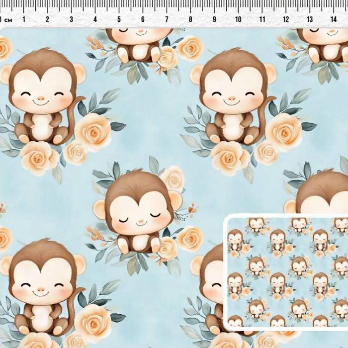 Descrição Tecido Tricoline Digital Macaco Fundo Azul