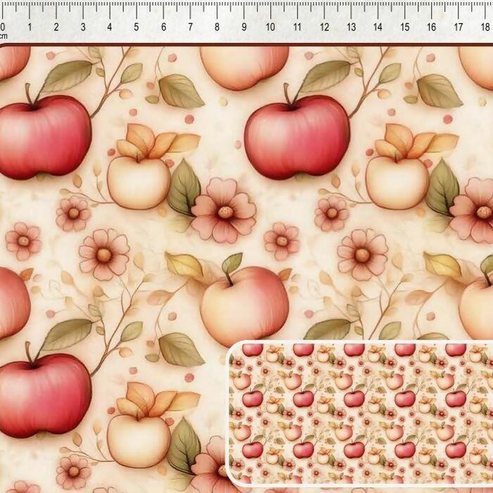 Tecido Tricoline Digital Maçãs Fundo Nude