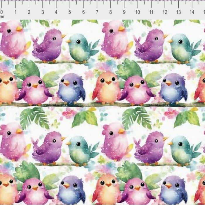 Descrição Tecido Tricoline Digital Magic Pássaros Coloridos