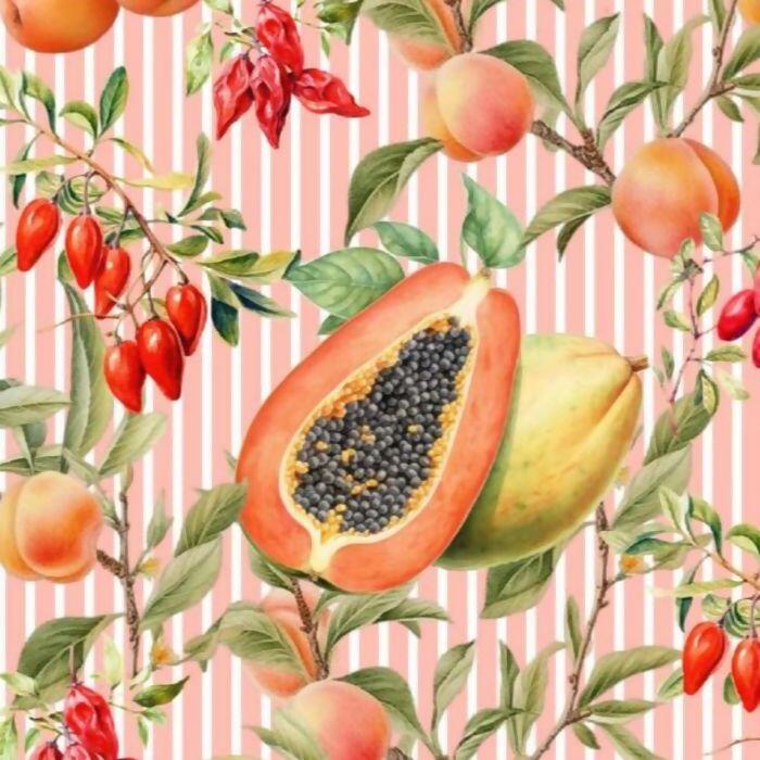 Descrição Tecido Tricoline Digital Mamão Fundo Listrado