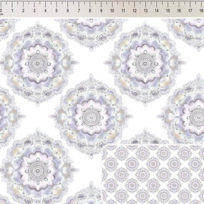 Descrição Tecido Tricoline Digital Mandala Lilás