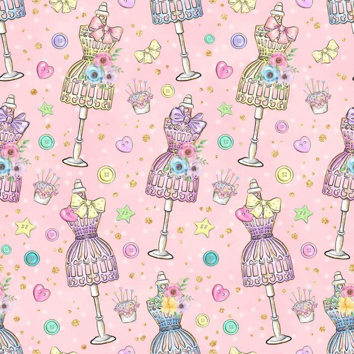 Descrição Tecido Tricoline Digital Manequins Fundo Rosa