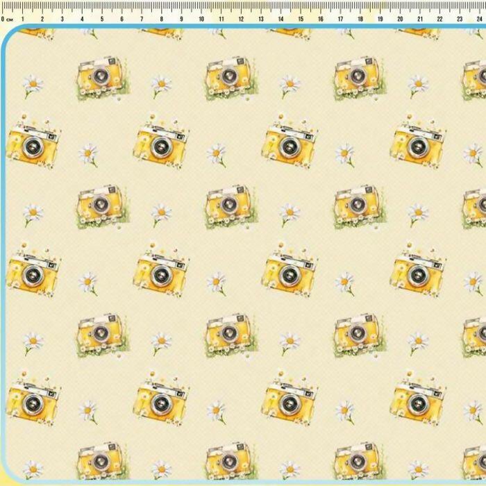 Descrição Tecido Tricoline Digital Máquina Fotográfica Amarela