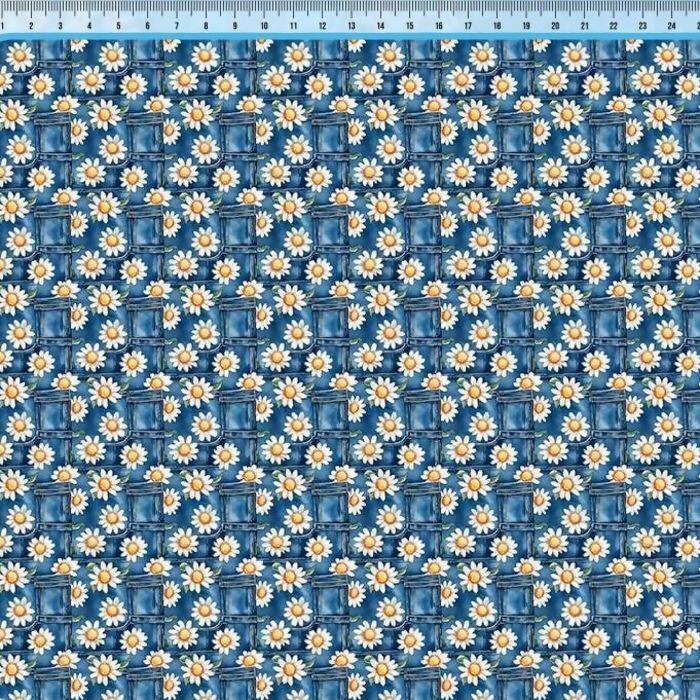 Descrição Tecido Tricoline Digital Margaridas Fundo Azul