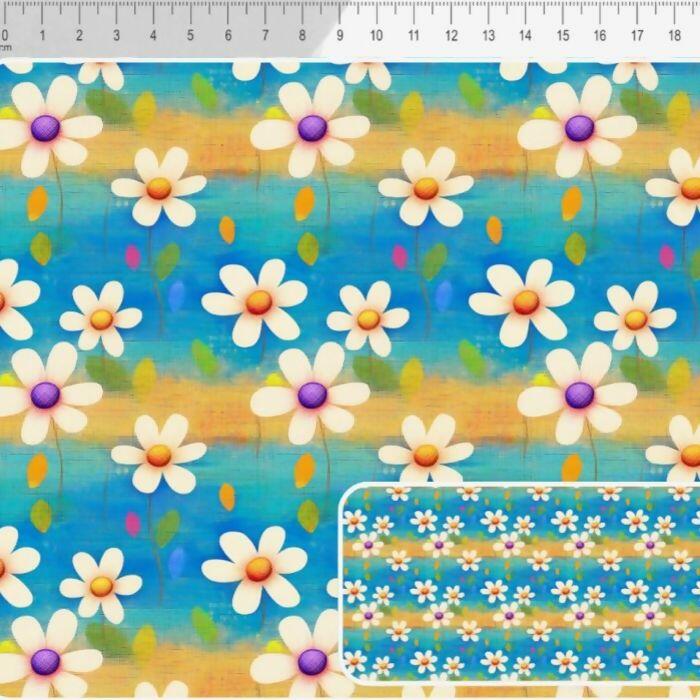 Descrição Tecido Tricoline Digital Margaridas Fundo Colorido