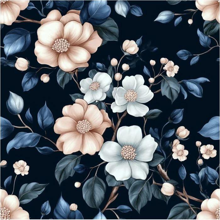 Descrição Tecido Tricoline Digital Marinus Flor Azul