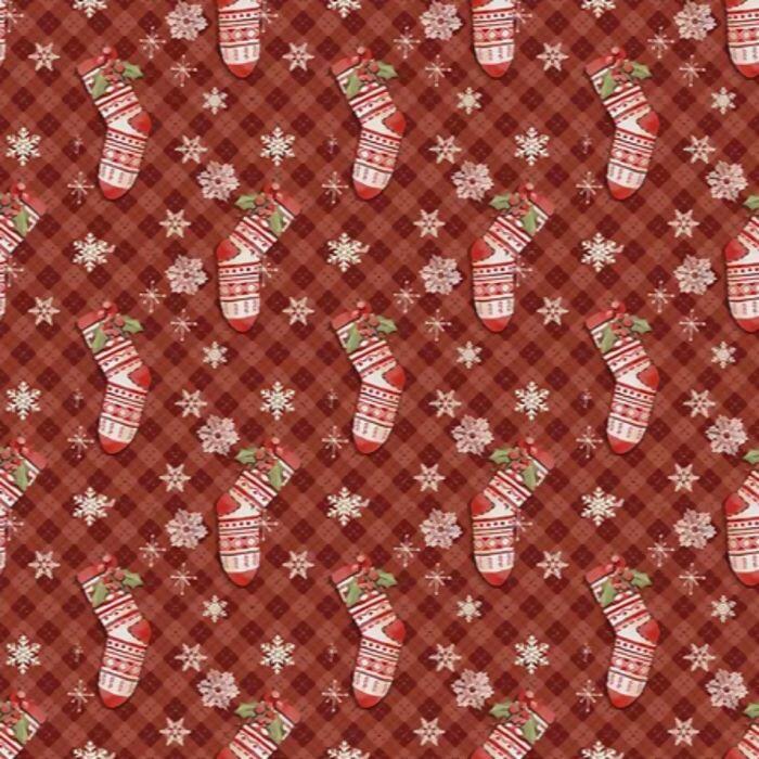 Tecido Tricoline Digital Meias Natal Fundo Xadrez Vermelho