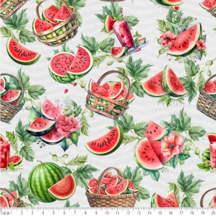 Descrição Tecido Tricoline Digital Melancia Fundo Branco