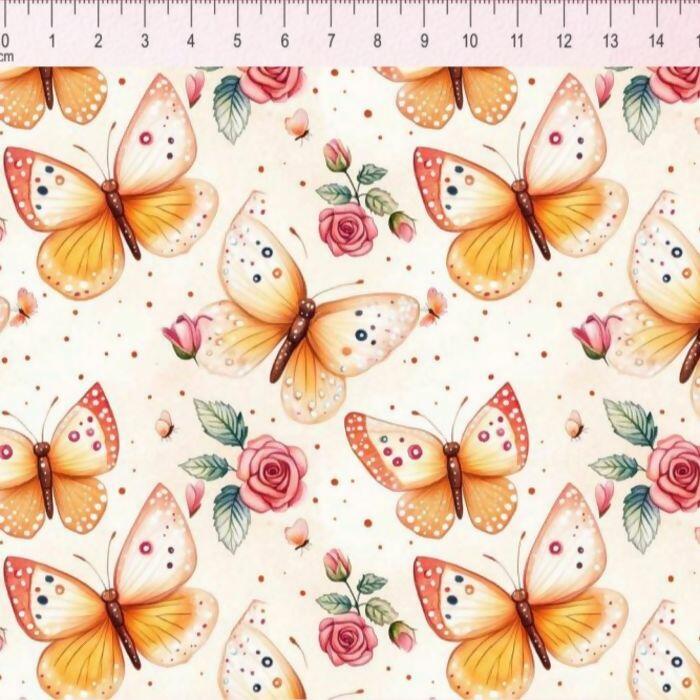 Descrição Tecido Tricoline Digital Melissa Borboleta