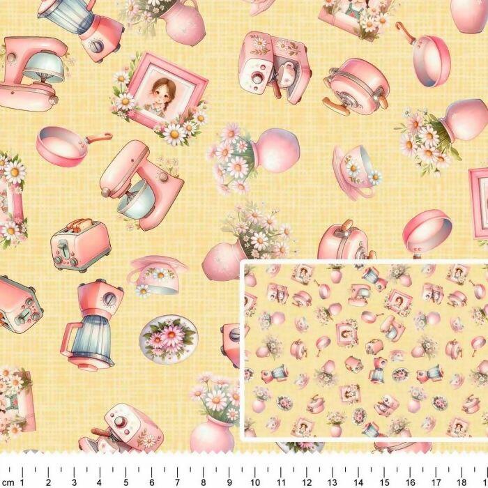 Tecido Tricoline Digital Memory Fundo Amarelo