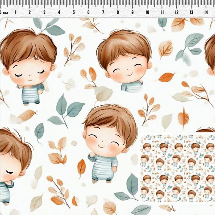 Descrição Tecido Tricoline Digital Meninos Fundo Branco
