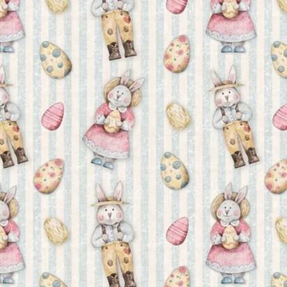 Tecido Tricoline Digital Mini Coelhos Fundo Azul