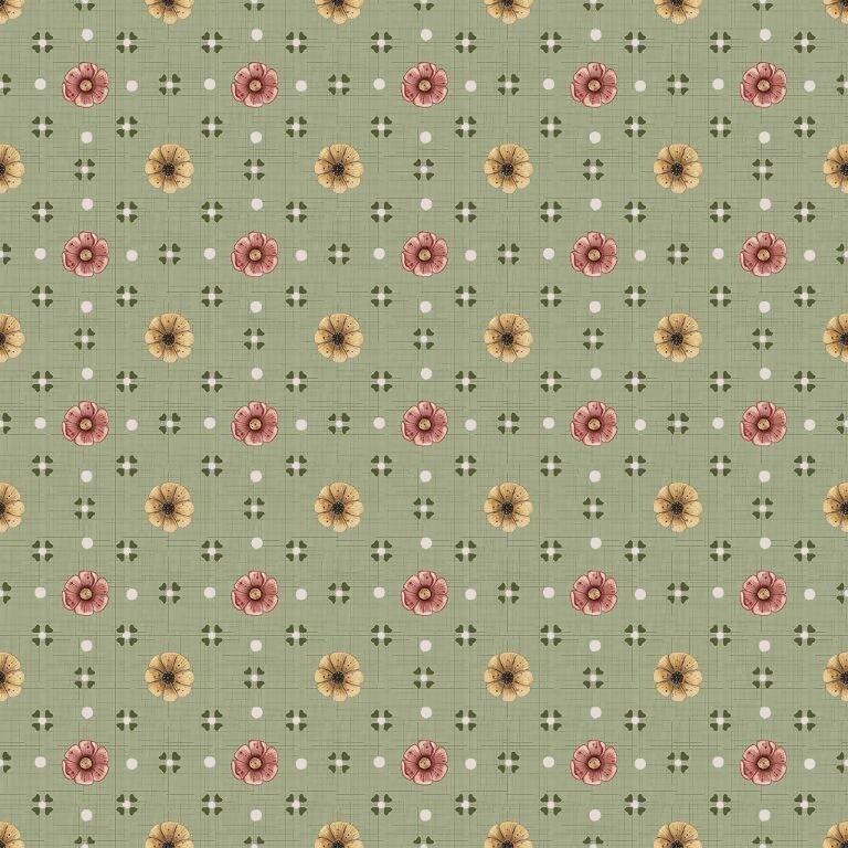 Tecido Tricoline Digital Mini Flores Alegria Verde