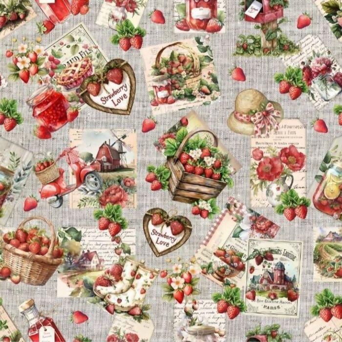 Descrição Tecido Tricoline Digital Moranguinhos