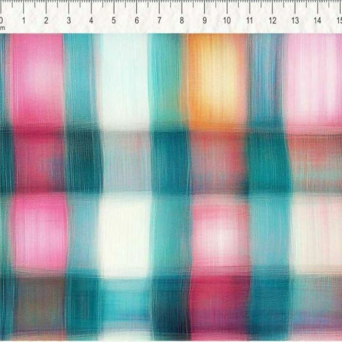 Tecido Tricoline Digital Mundo Colorido Xadrez