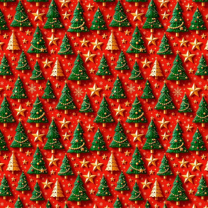 Descrição Tecido Tricoline Digital Natal Árvores e Estrelas
