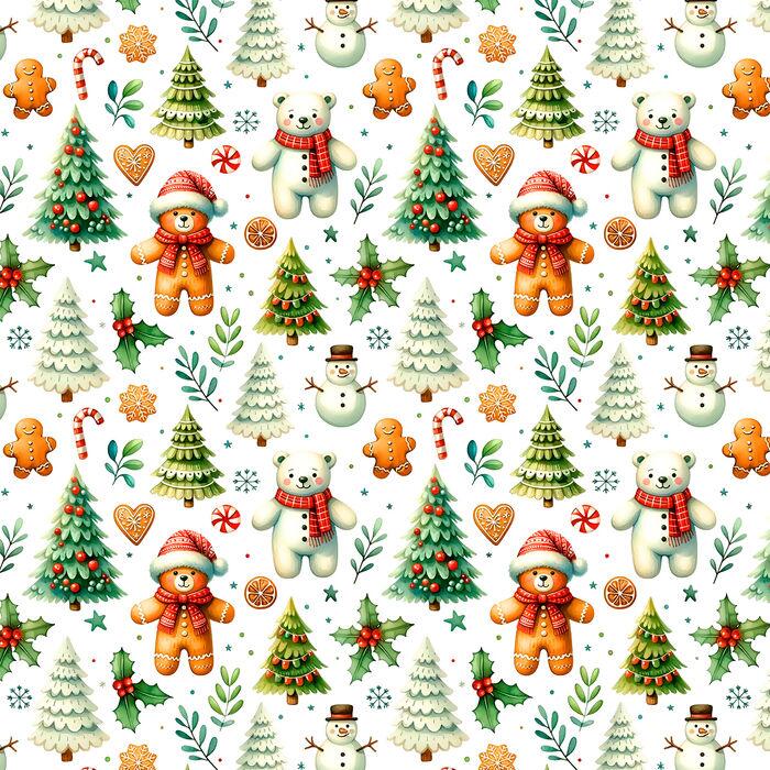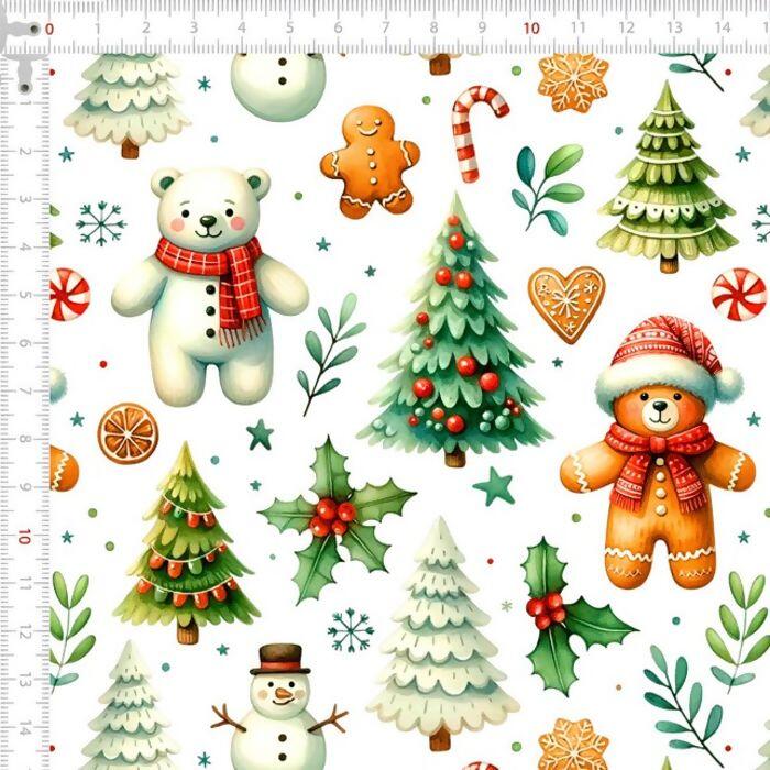 Tecido Tricoline Digital Natal Árvores e Ursinhos