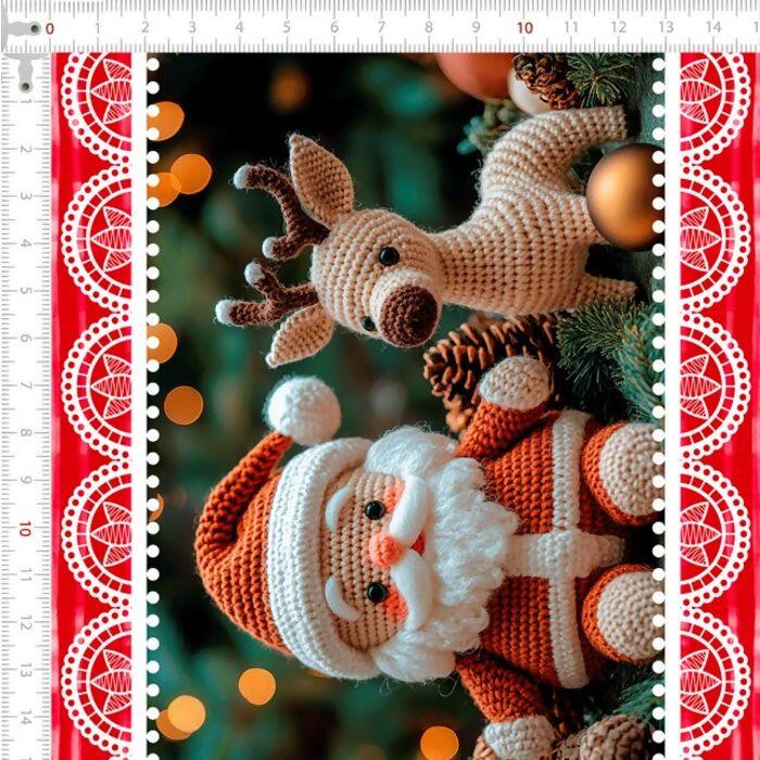 Descrição Tecido Tricoline Digital Natal Barrado Amigurumis