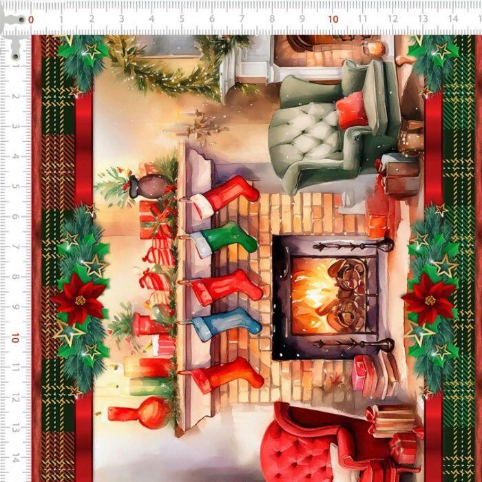 Descrição Tecido Tricoline Digital Natal Barrado Casa Papai Noel