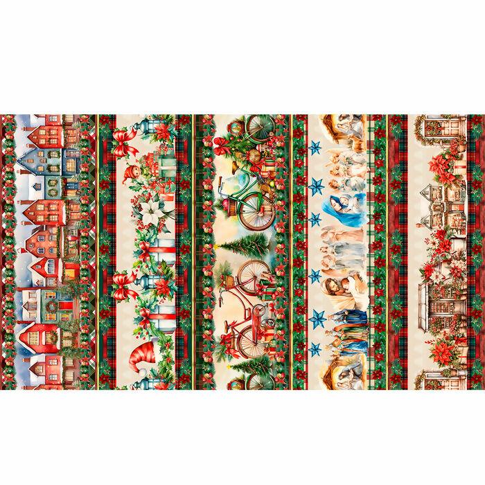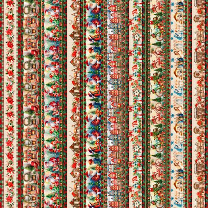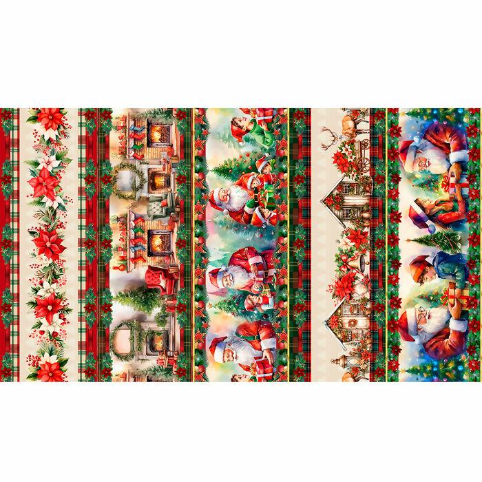 Tecido Tricoline Digital Natal Barrado Casa Papai Noel
