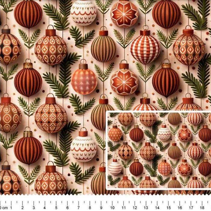 Descrição Tecido Tricoline Digital Natal Bolas Fundo Creme