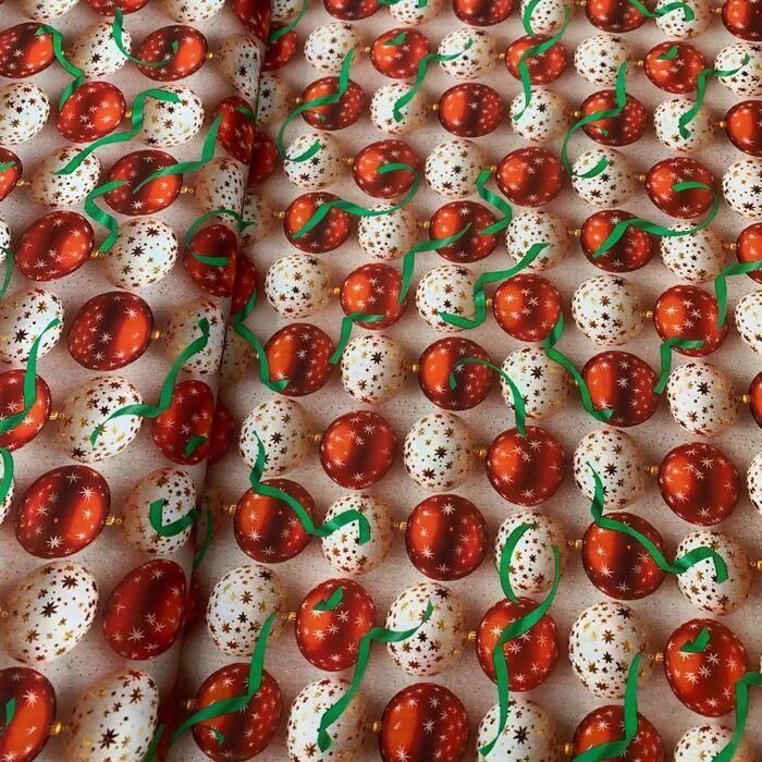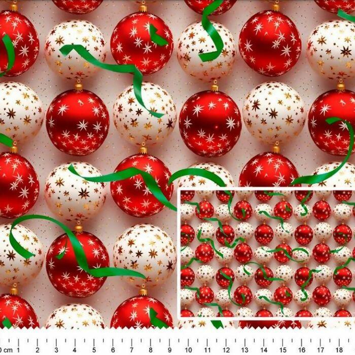 Vídeo Tecido Tricoline Digital Natal Bolas Vermelho e Branco