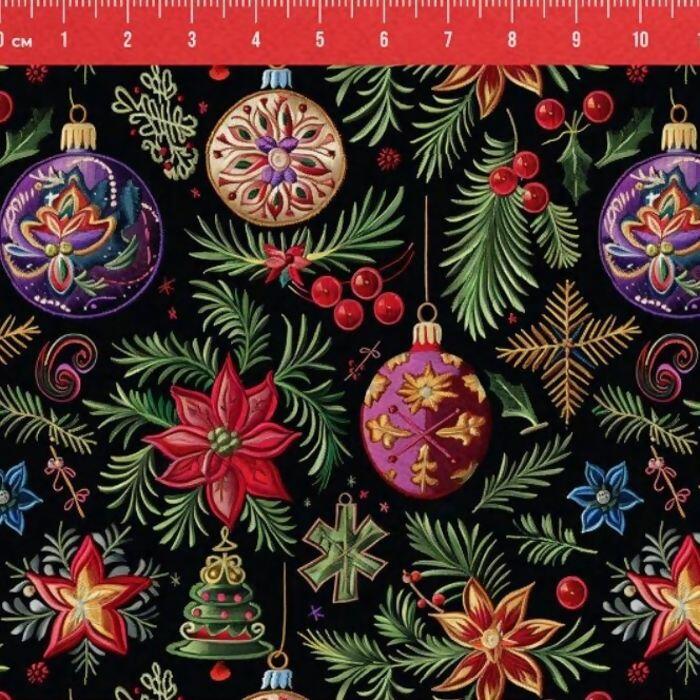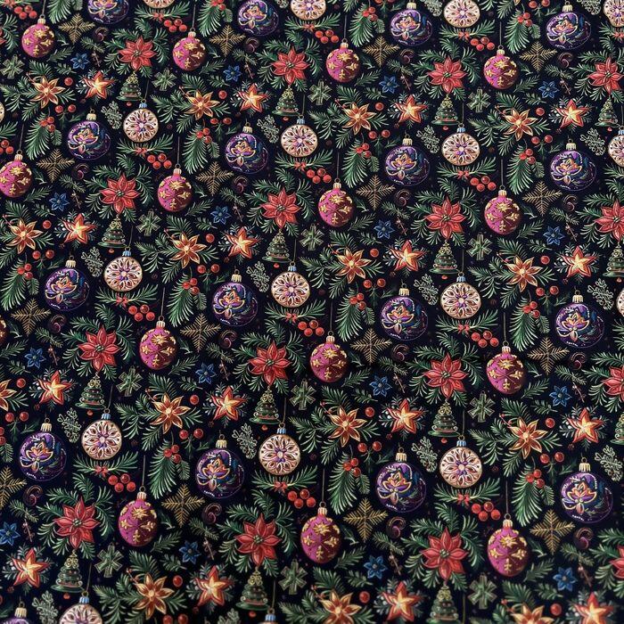 Descrição Tecido Tricoline Digital Natal Bordado Bolas