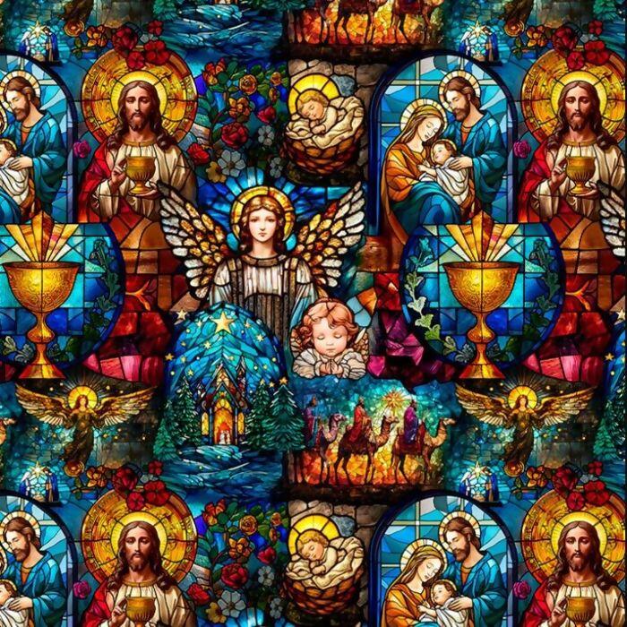 Descrição Tecido Tricoline Digital Natal Composê Religioso