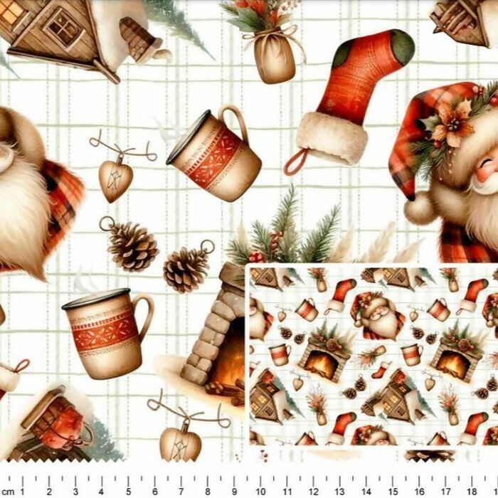 Descrição Tecido Tricoline Digital Natal Desenhos Natalinos