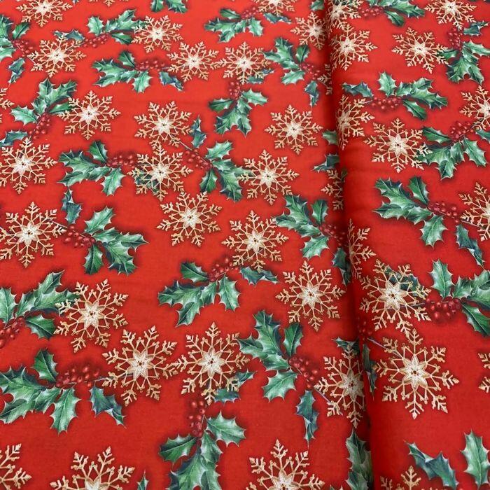 Vídeo Tecido Tricoline Digital Natal Dourado