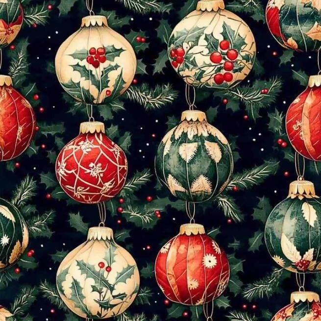 Descrição Tecido Tricoline Digital Natal Enfeites Bolas Verde 1