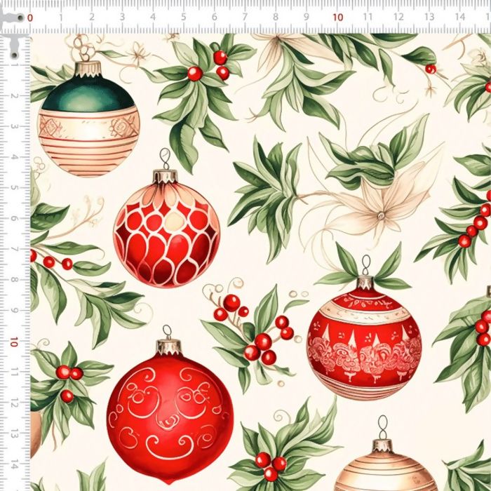 Descrição Tecido Tricoline Digital Natal Enfeites