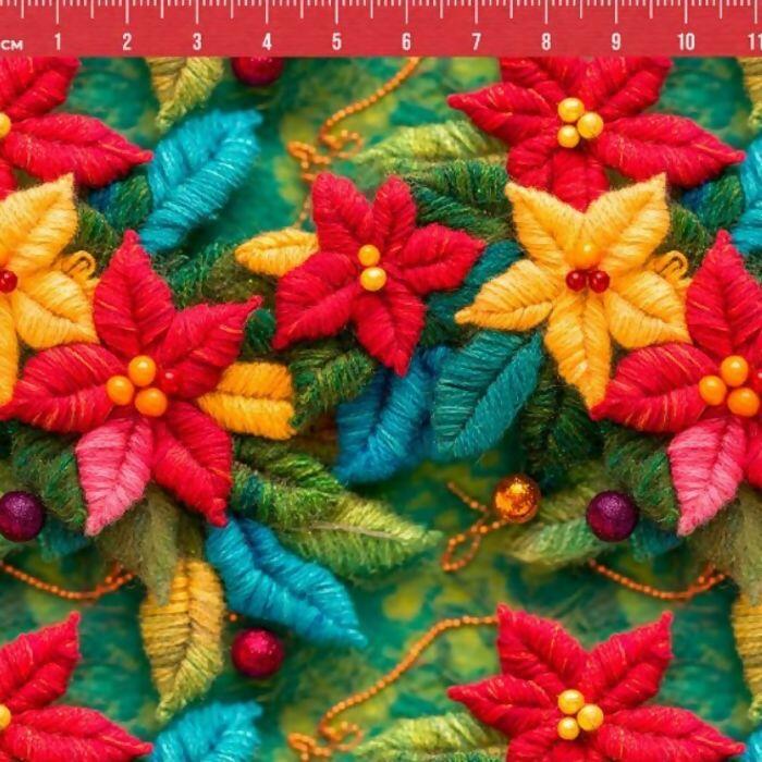 Tecido Tricoline Digital Natal Flor Fundo Verde