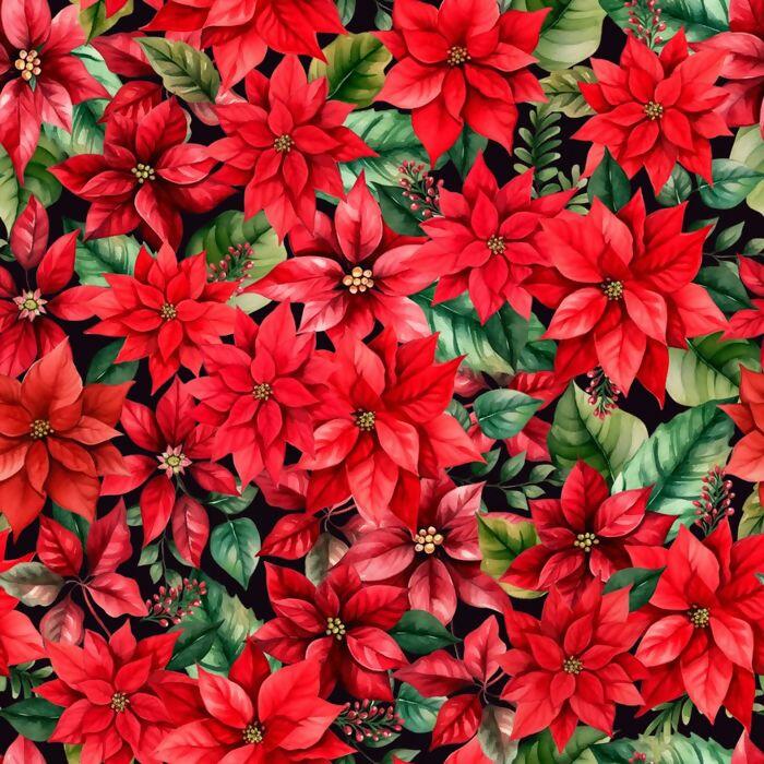 Tecido Tricoline Digital Natal Flores Vermelhas