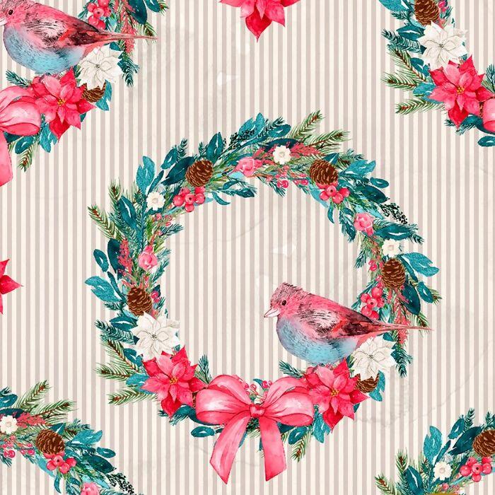 Descrição Tecido Tricoline Digital Natal Guirlanda Pássaros Rosa