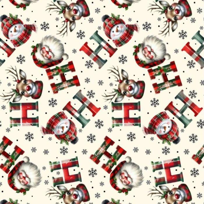 Descrição Tecido Tricoline Digital Natal Ho Ho Ho