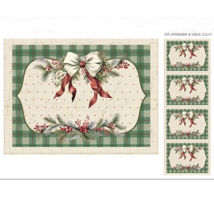Descrição Tecido Tricoline Digital Natal Jogo Americano Laços