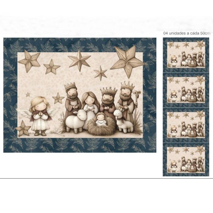 Tecido Tricoline Digital Natal Jogo Americano Presépio